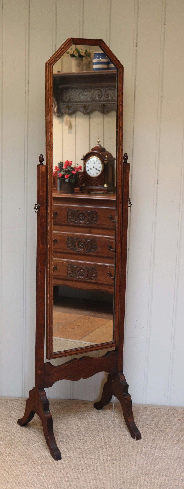 Edwardian Oak Framed Cheval Mirror