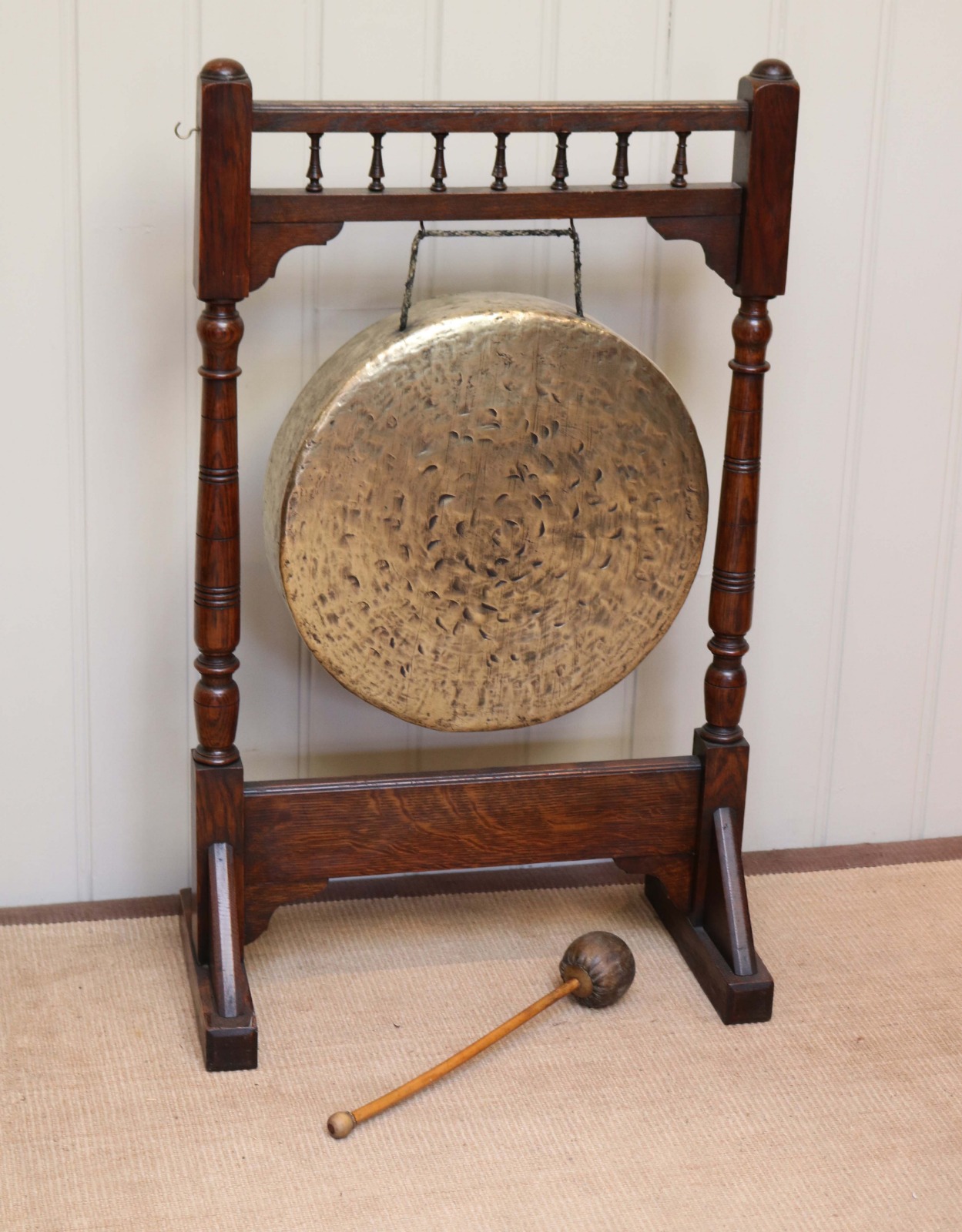 Edwardian Oak Framed Floor Standing Gong (1 of 1)