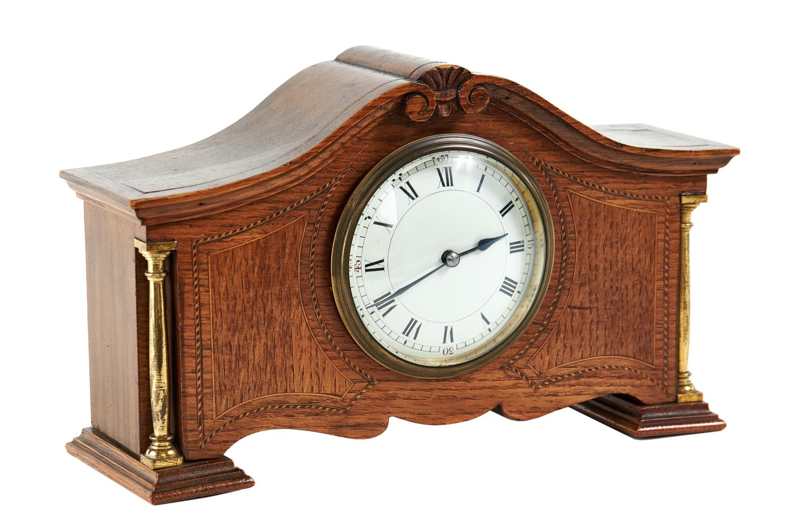 Edwardian Oak & Inlaid Mantel Clock (1 of 5)