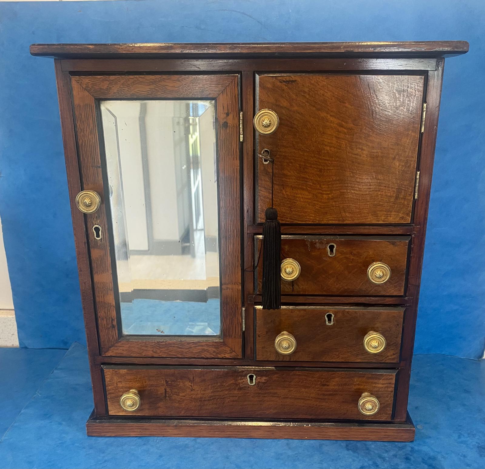 Edwardian Oak Miniature Dolls Dressing Wardrobe