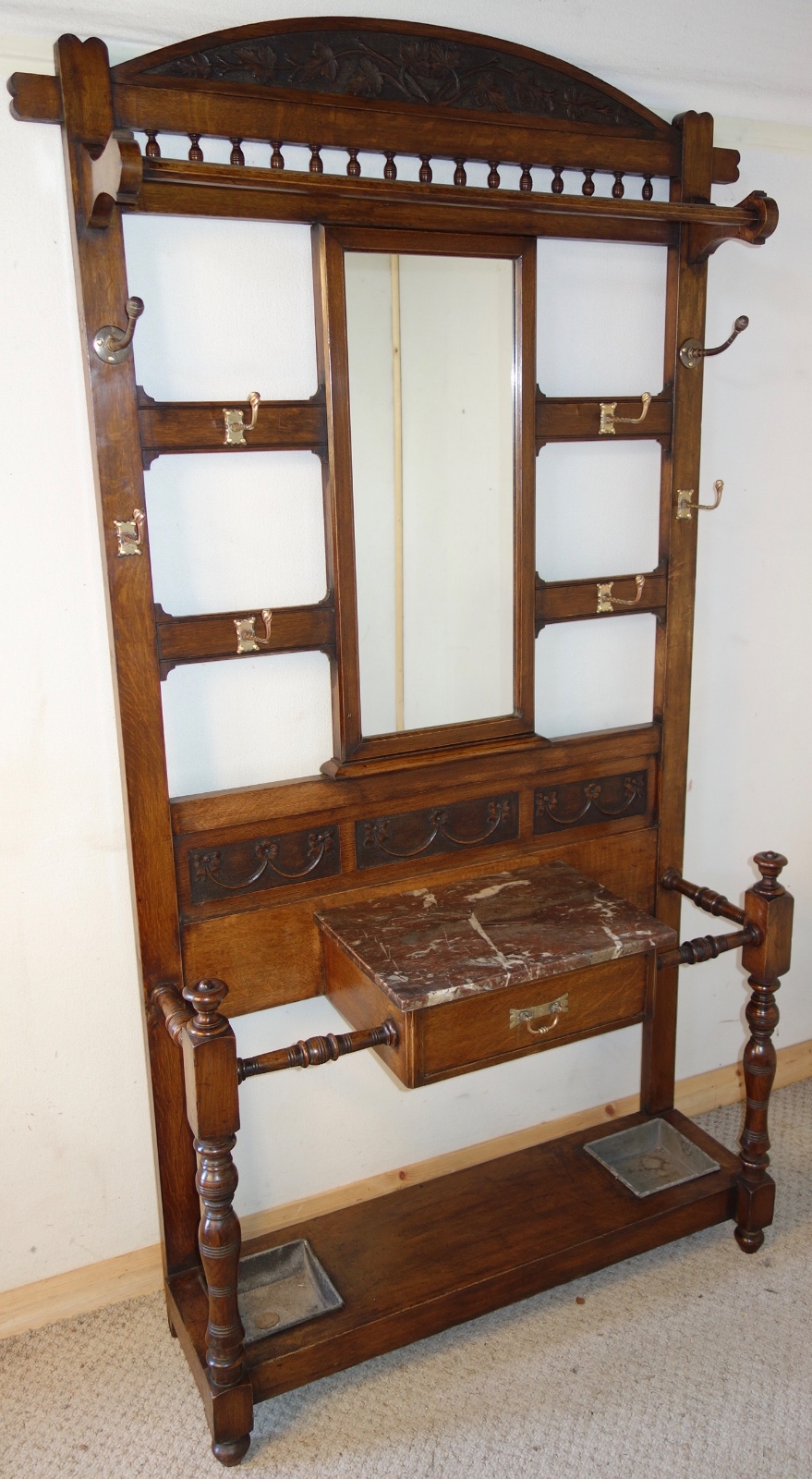 Edwardian Oak Mirror Back Hall Stand (1 of 1)
