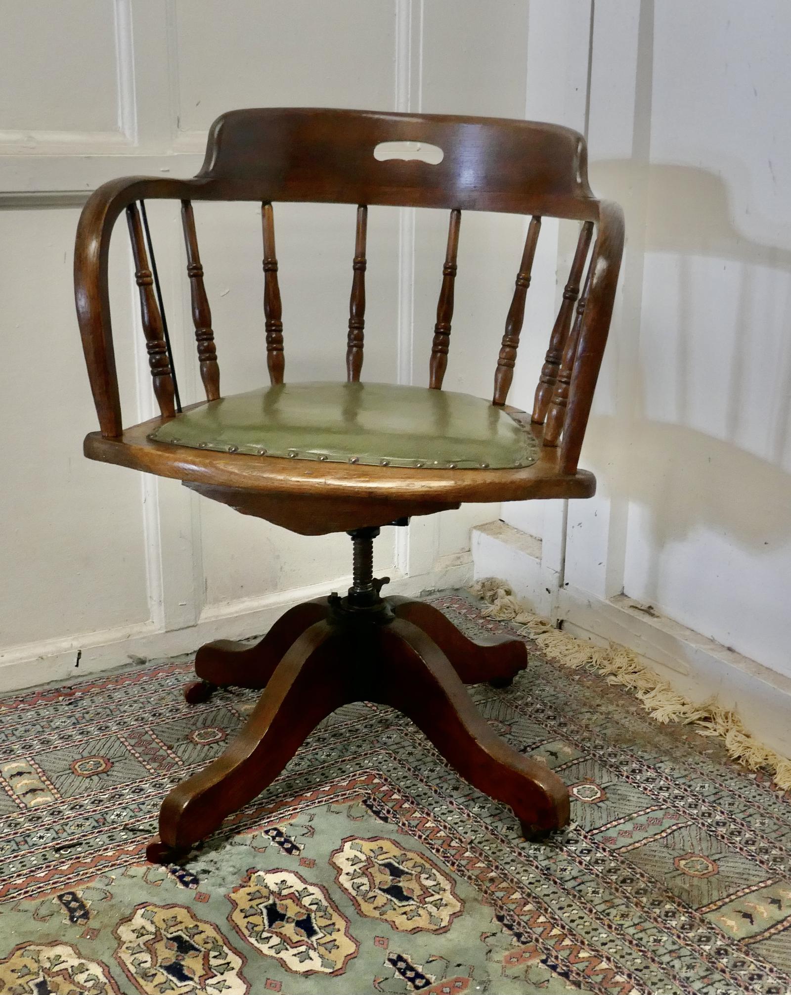 Edwardian Oak Office Desk Chair, Smokers Bow