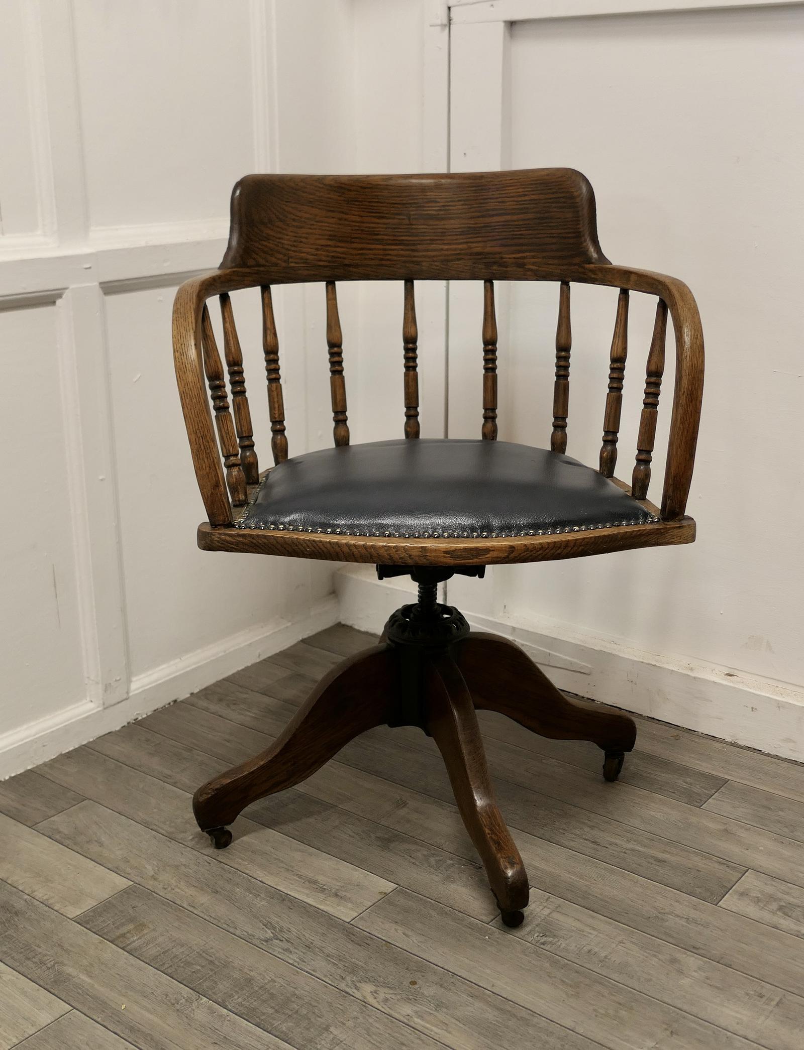 Edwardian Oak Office Desk Chair, Smokers Bow