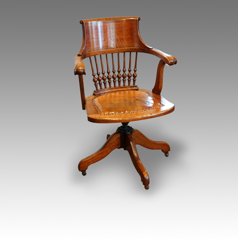 Edwardian Oak Revolving Desk Chair (1 of 1)