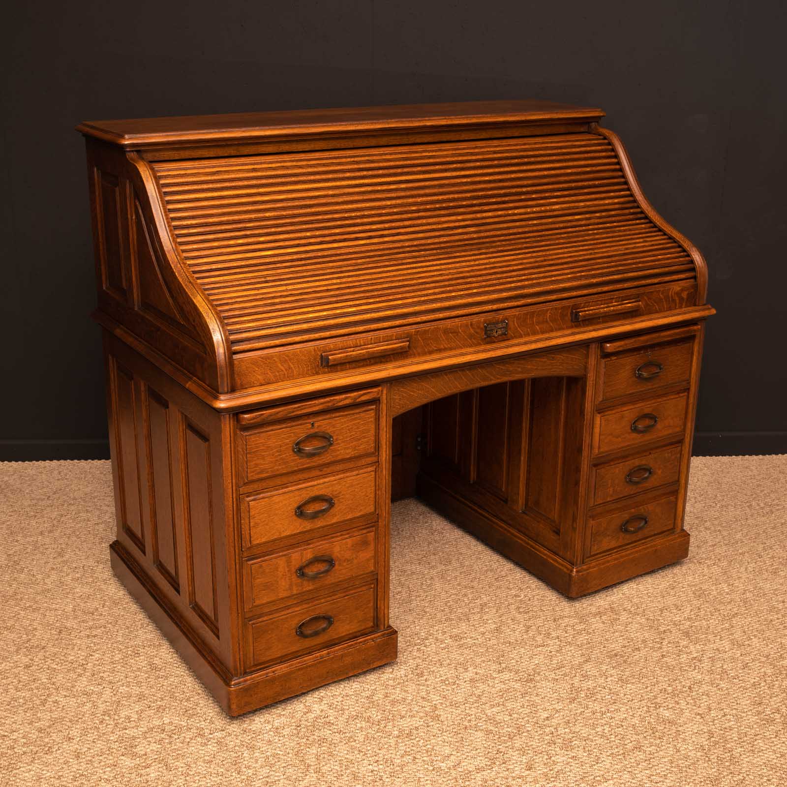 Edwardian Oak Roll Top Desk by H.L.L