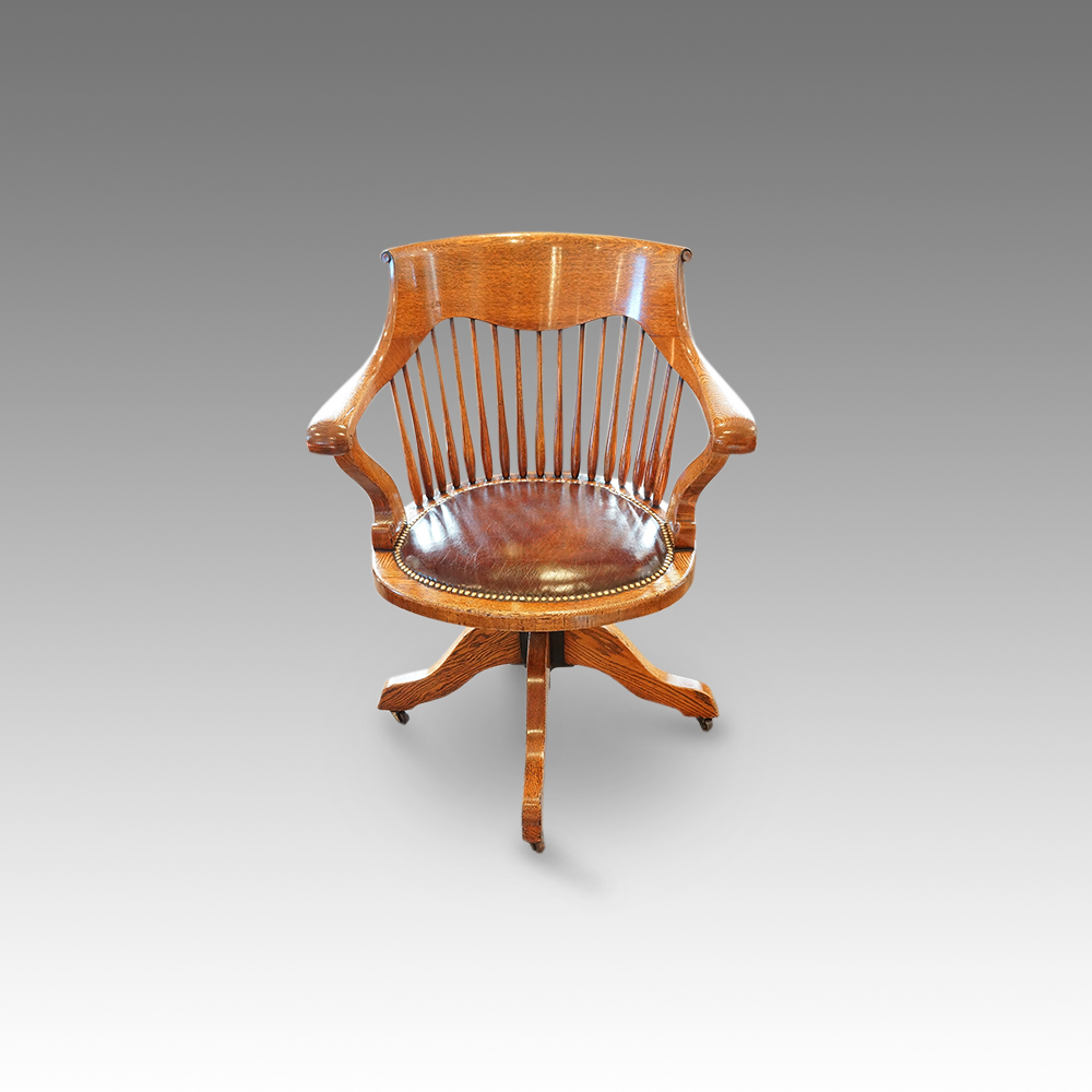 Edwardian Oak Spindle Back Revolving Desk Chair