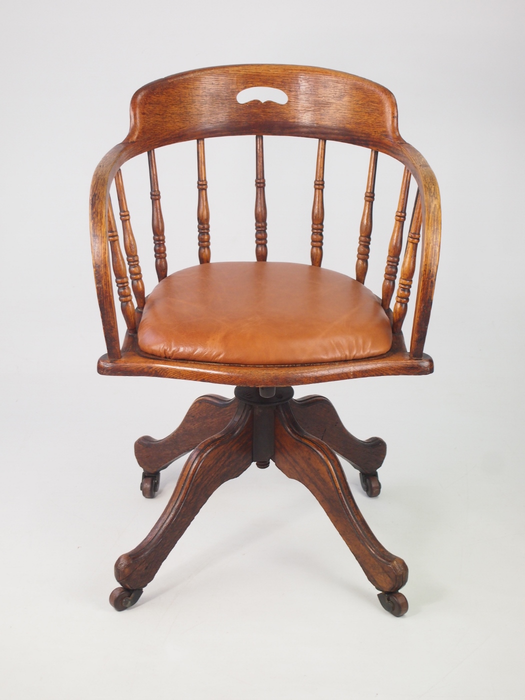 Edwardian Oak Swivel Desk Chair with Leather Seat