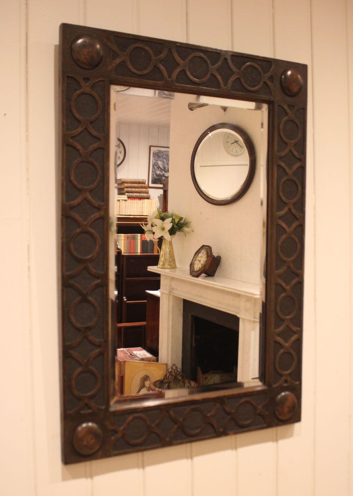 This Edwardian Oak Wall Mirror is located in Buckinghamshire, United Kingdom