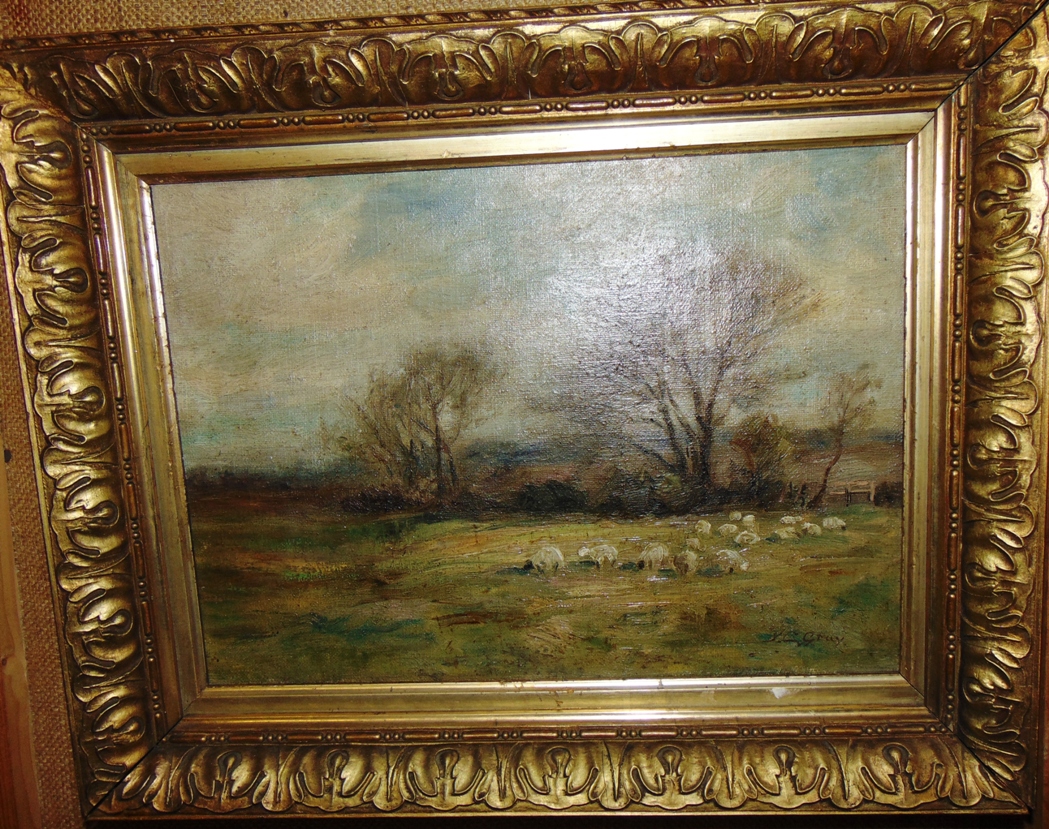 Edwardian Oil of Sheep Grazing by J.C.Gray