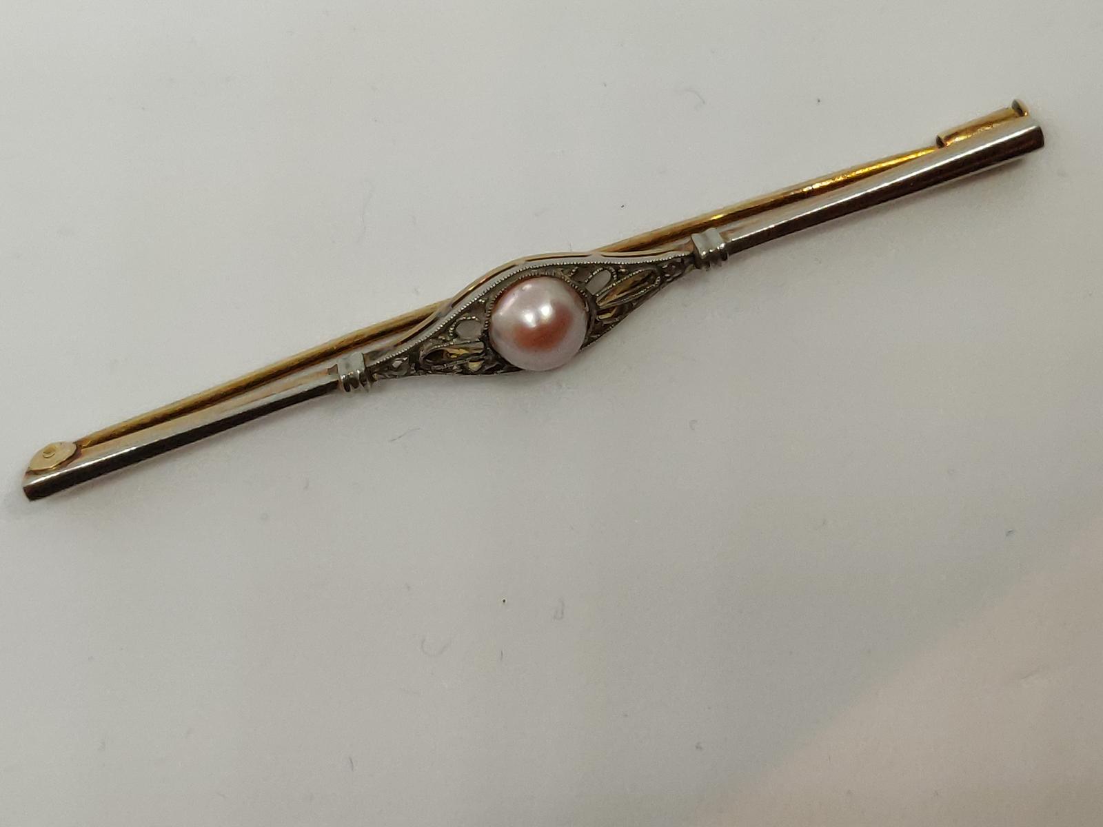Edwardian Old Cut Diamond & Real Pink Pearl Brooch 15ct Yellow Gold & Platinum