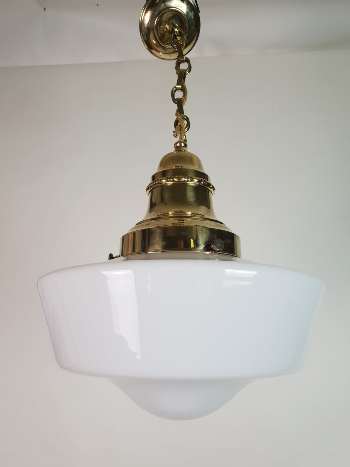 Edwardian Opaline Ceiling Light with Original Brass Gallery, Rewired