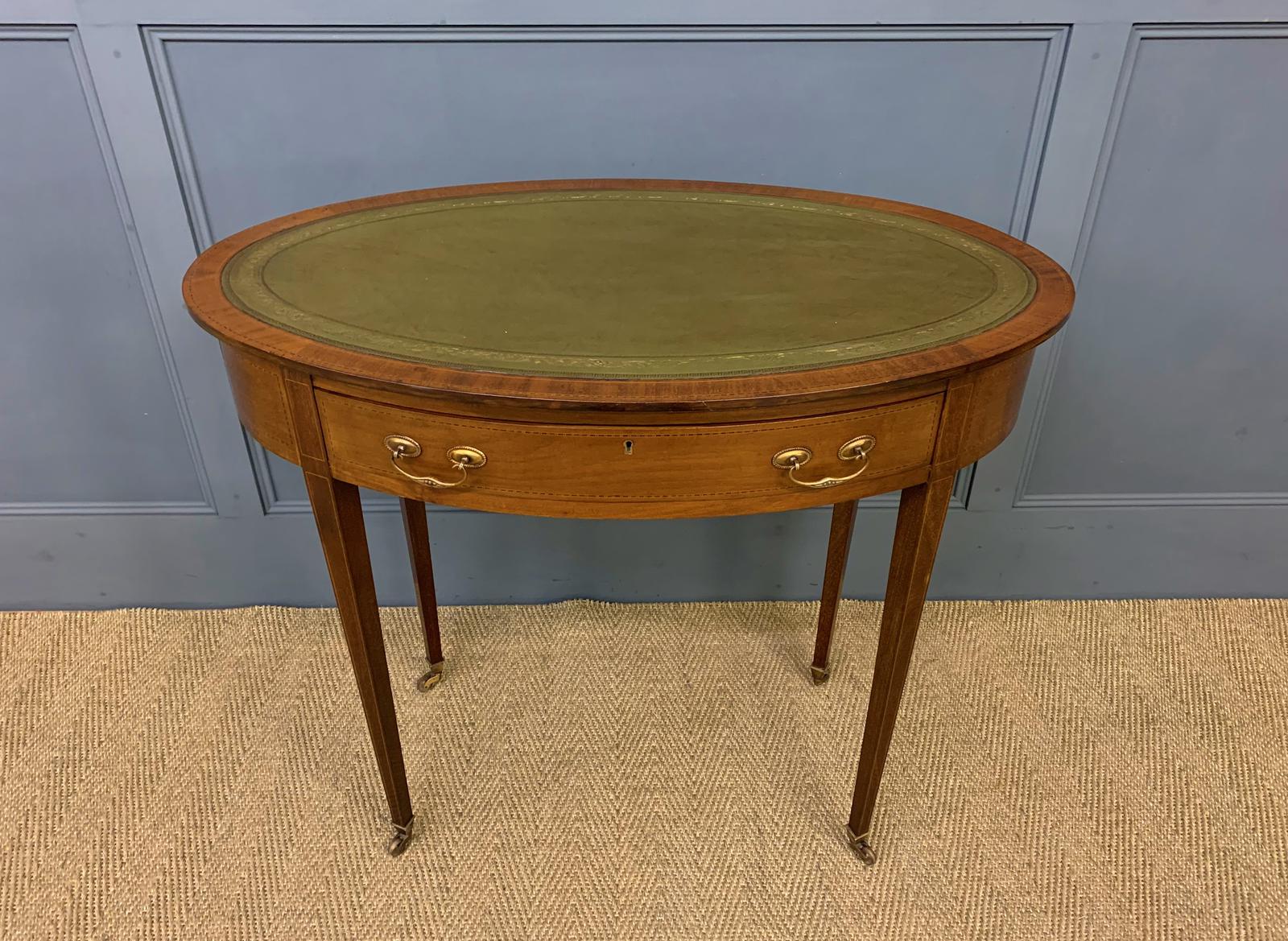 Edwardian Oval Inlaid Mahogany Writing Table (1 of 13)