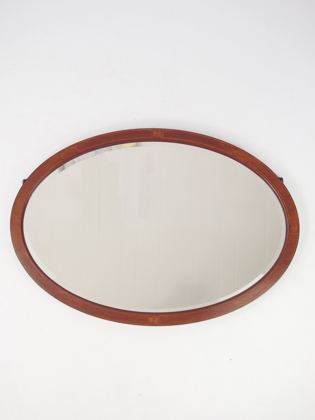 Edwardian Oval Mahogany Framed Mirror with Label c.1910 (1 of 1)