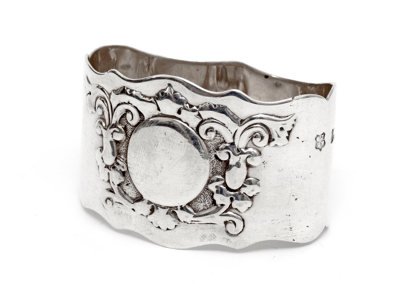 Edwardian Oval Silver Napkin Ring Embossed with Scrolls and Flowers (1 of 4)