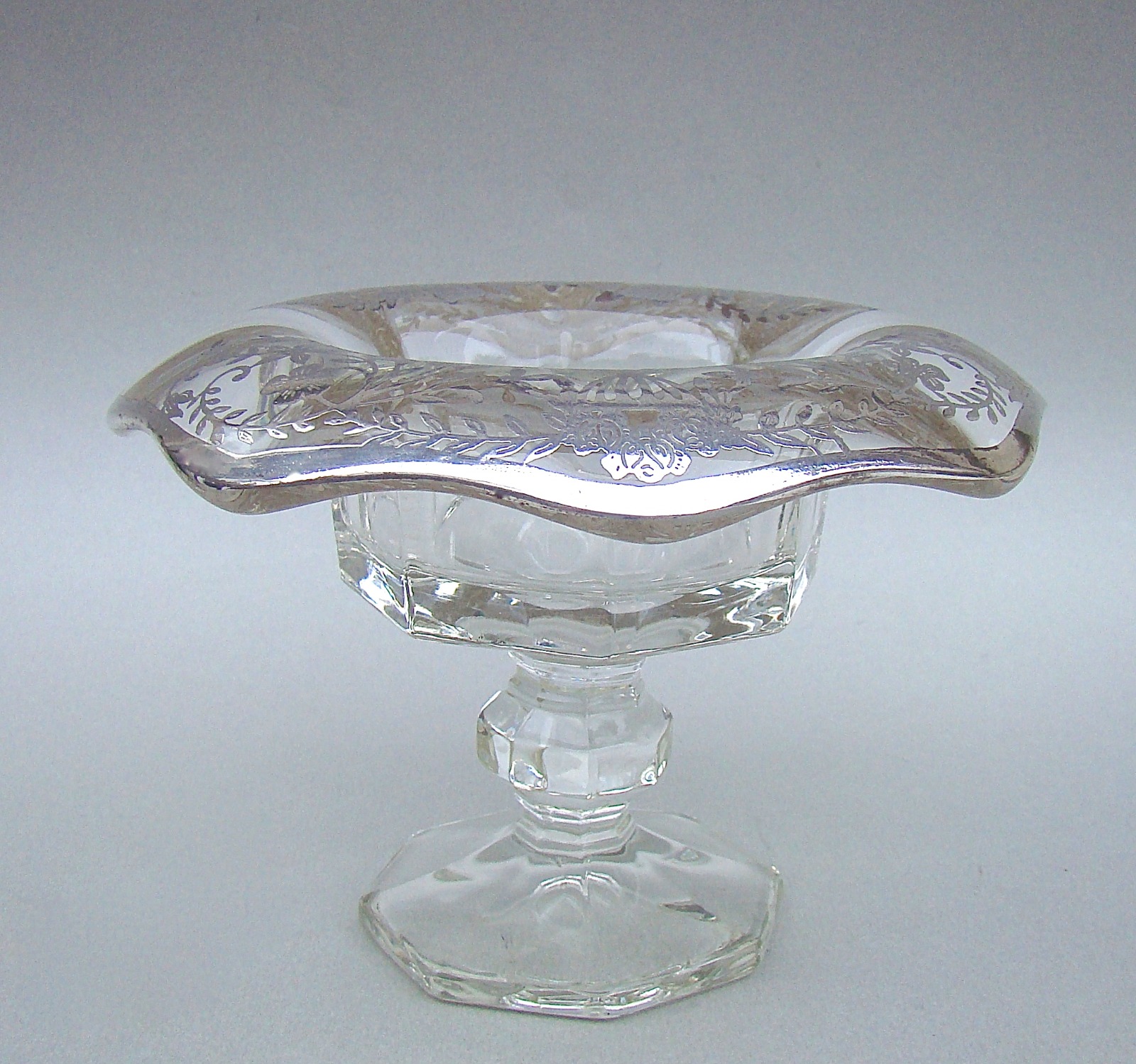 Edwardian Overlay Sterling Silver Pressed Glass Pedestal Dish