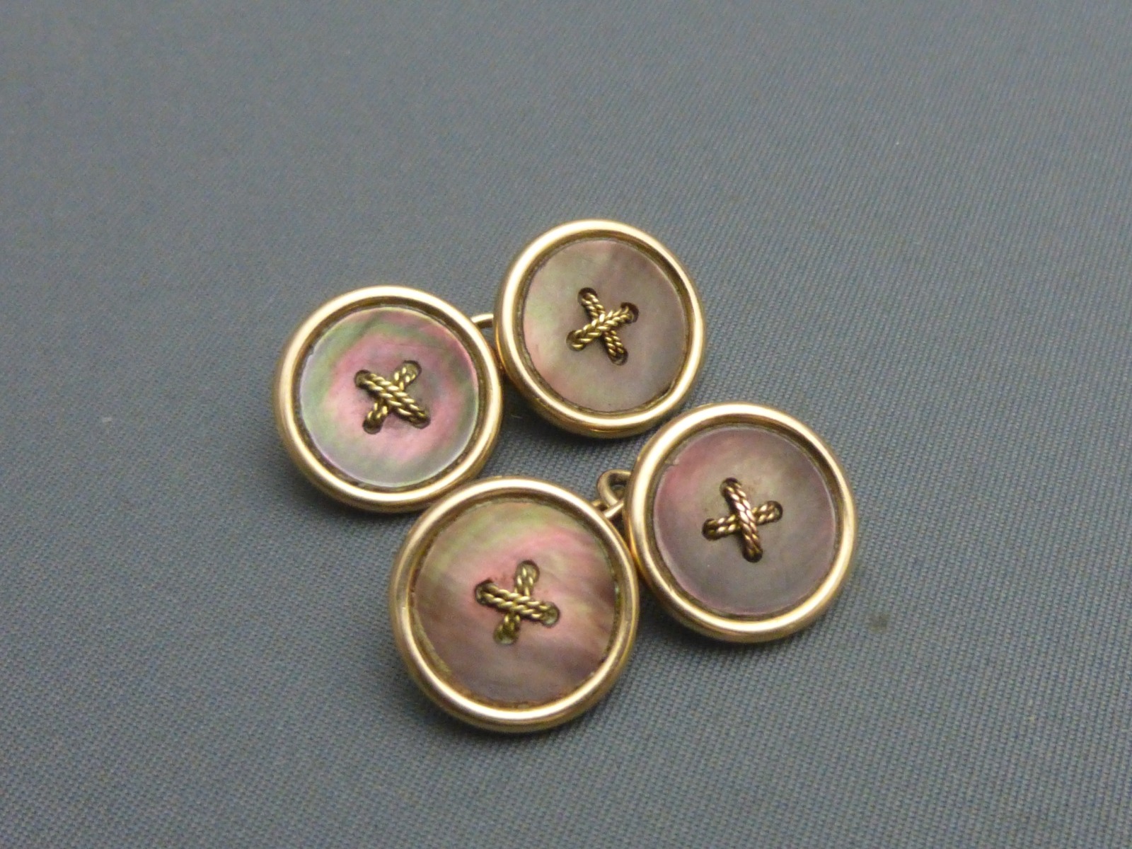 Edwardian Pair of 9ct Gold & Abalone Cufflinks