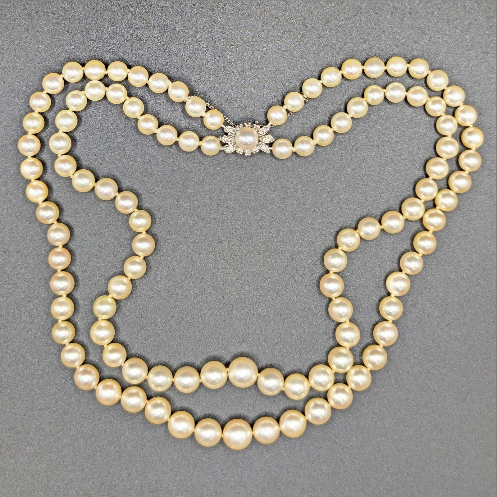Edwardian Pearl Necklace Diamond Clasp Antique Double Row Pearls with Gem Certificate (1 of 13)