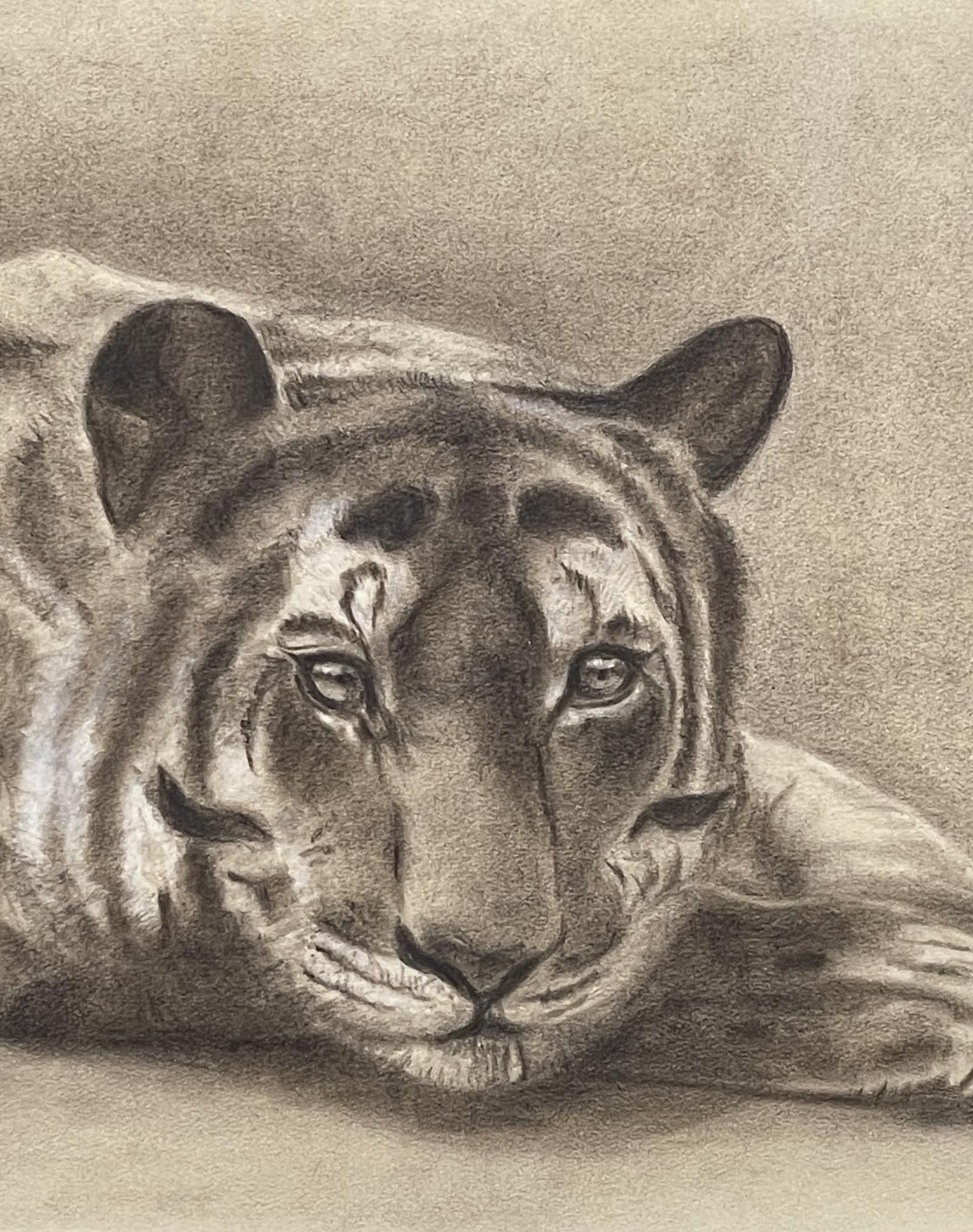 Edwardian Pencil Study of a Tiger by Kathleen Corfield 1901