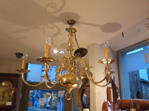 Edwardian Period Brass Six Arm Chandelier