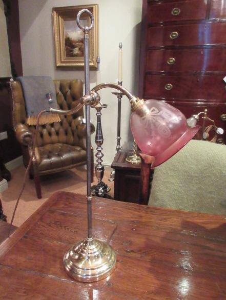 Edwardian Period Brass & Steel Rise & Fall Lamp