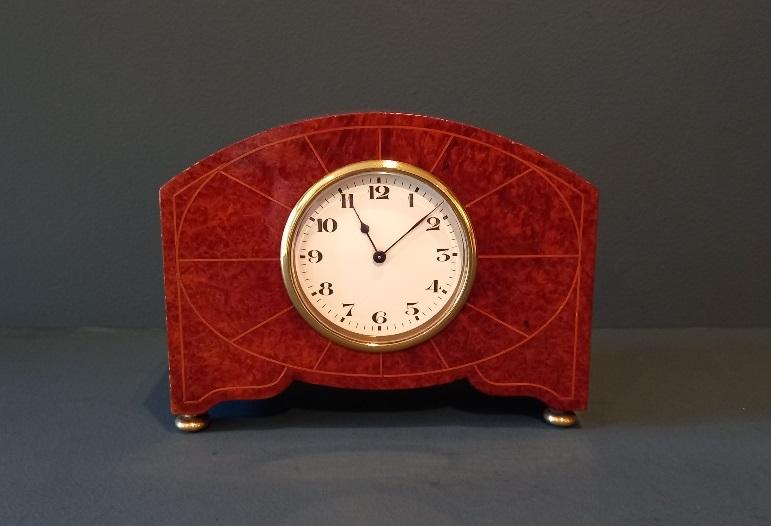 Edwardian Period Burr Walnut Inlaid Mantel Clock