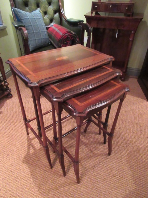 Edwardian Period Nest of Three Sheraton Inlaid Tables