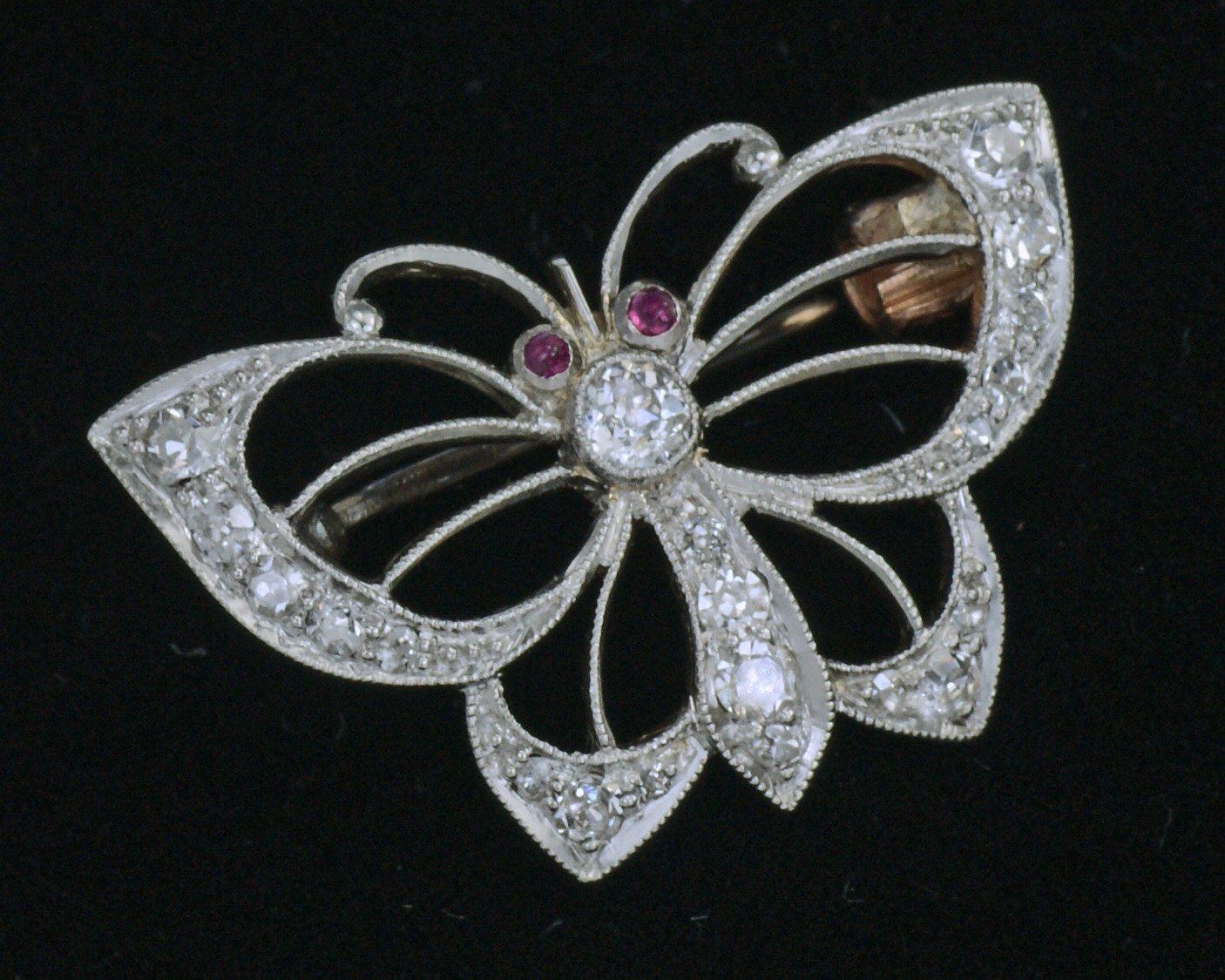 Edwardian Platinum Old Cut Diamond Ruby Antique Butterfly Brooch c.1910 (1 of 1)