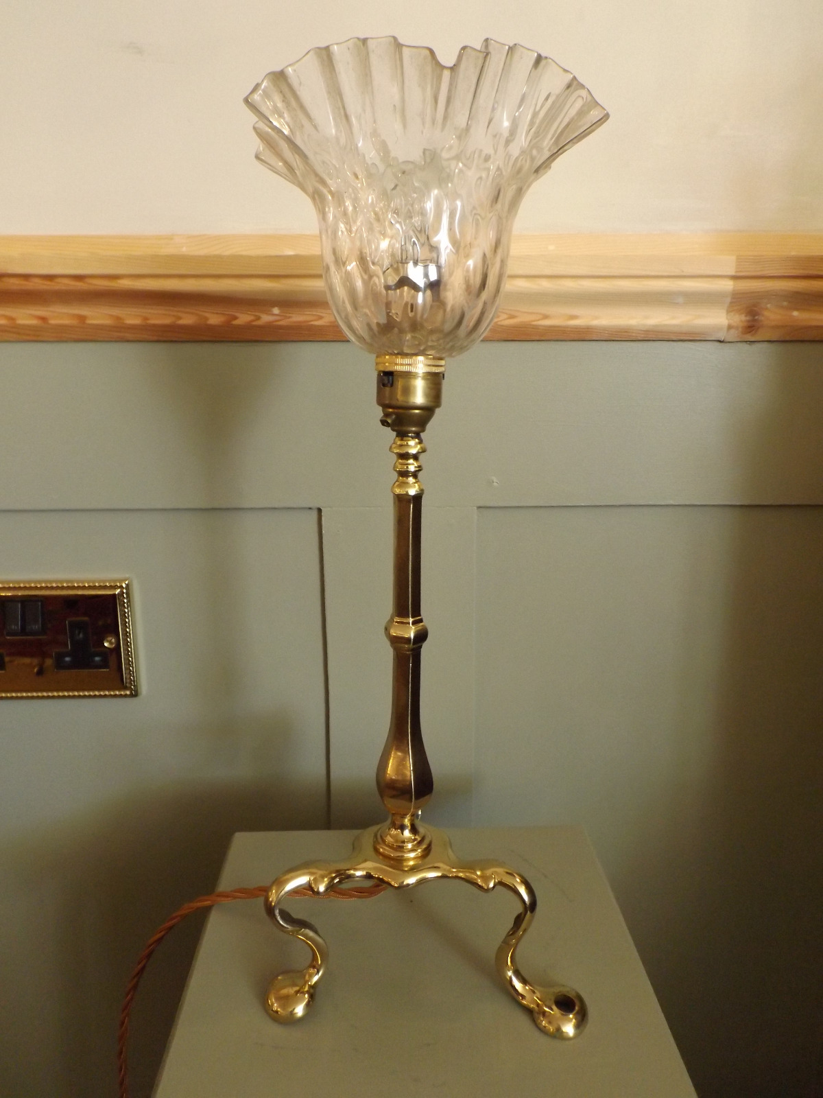 Edwardian Pulman Brass Lamp Clear Glass Dimpled Shade Frilled Edge