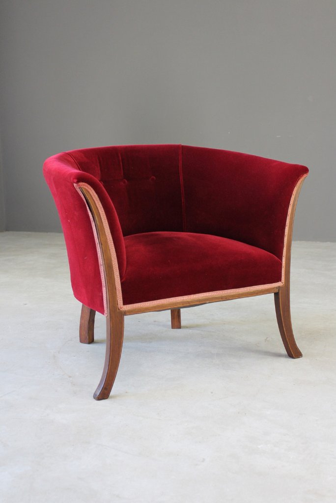Edwardian Red Upholstered Tub Chair (1 of 1)