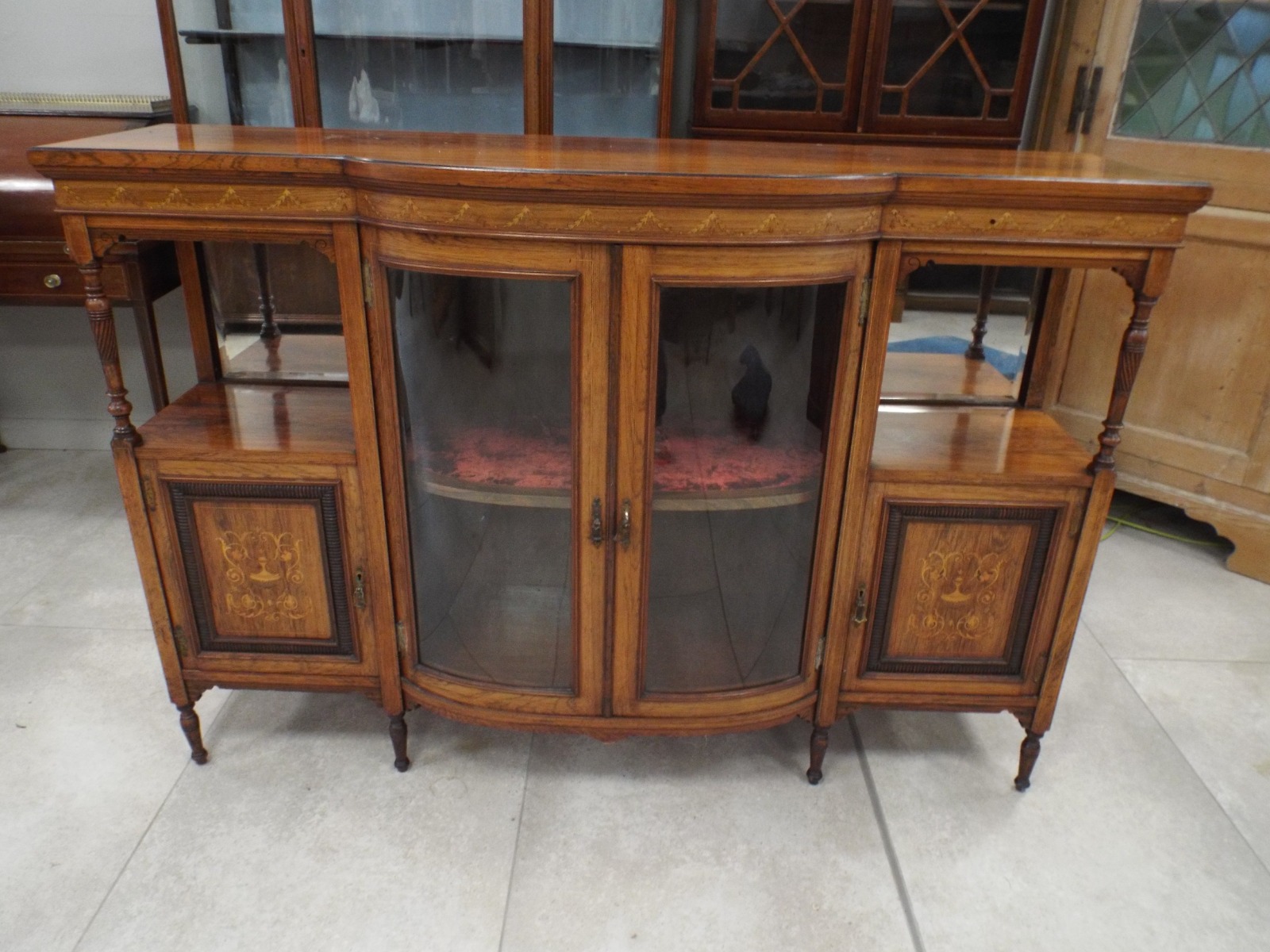 Edwardian Rosewood & Marquetry Inlaid Display Cabinet Credenza
