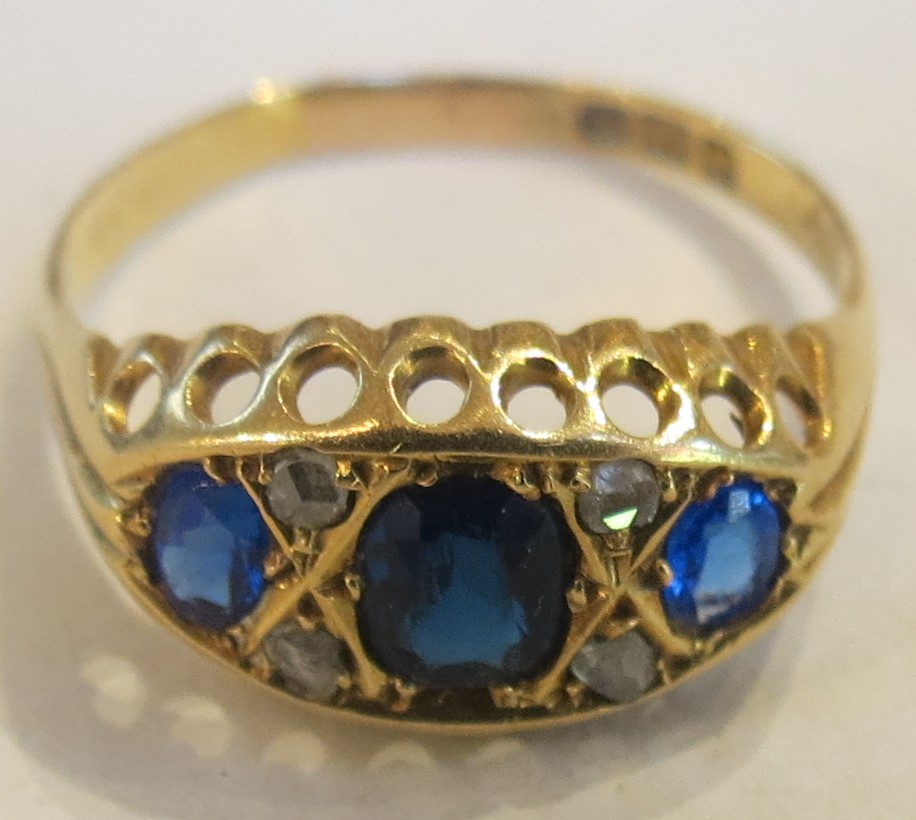 Edwardian Sapphire & Diamond 18ct Gold Ring - Ca 1901 (1 of 7)