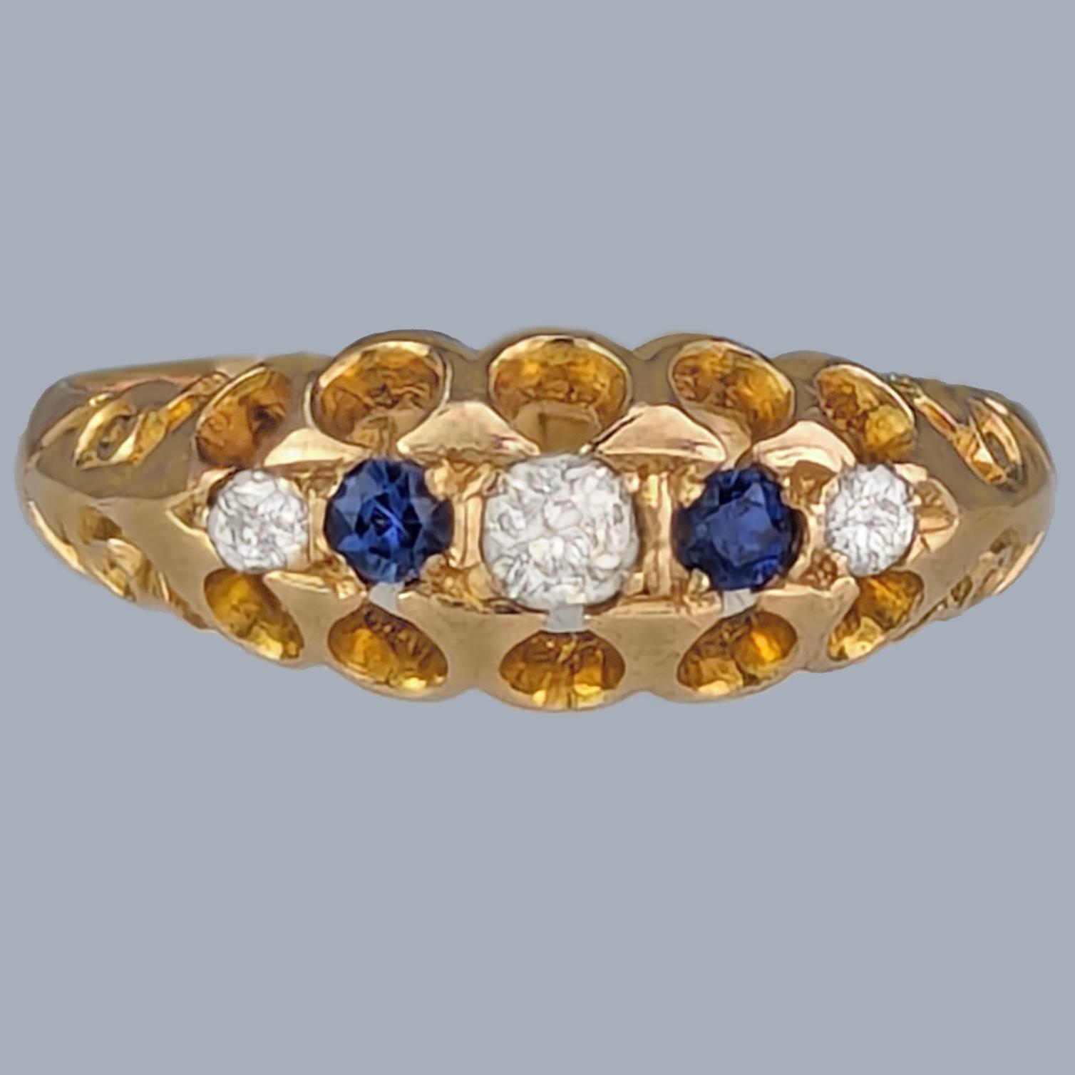 Edwardian Sapphire Diamond Bateau 5 Stone Ring Antique 18ct Gold Chester 1908
