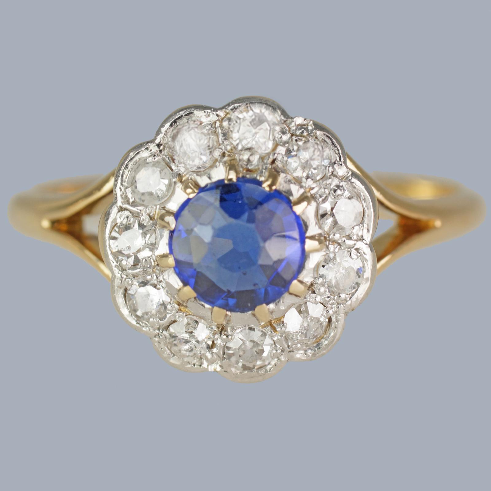 Edwardian Sapphire & Diamond Cluster Ring 18ct Gold Antique Flowerhead Ring (1 of 8)