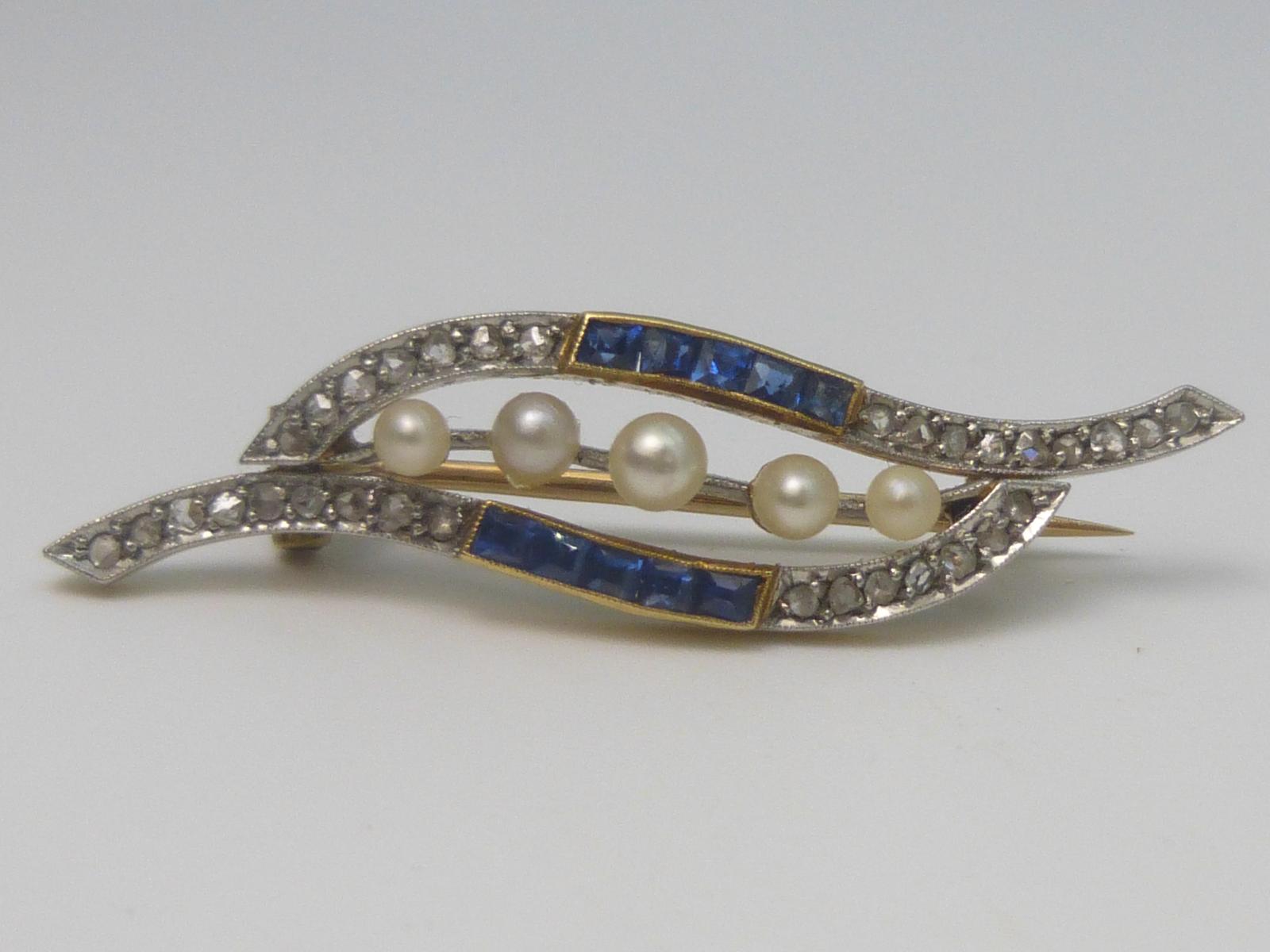 Edwardian Sapphire, Diamond & Pearl Brooch