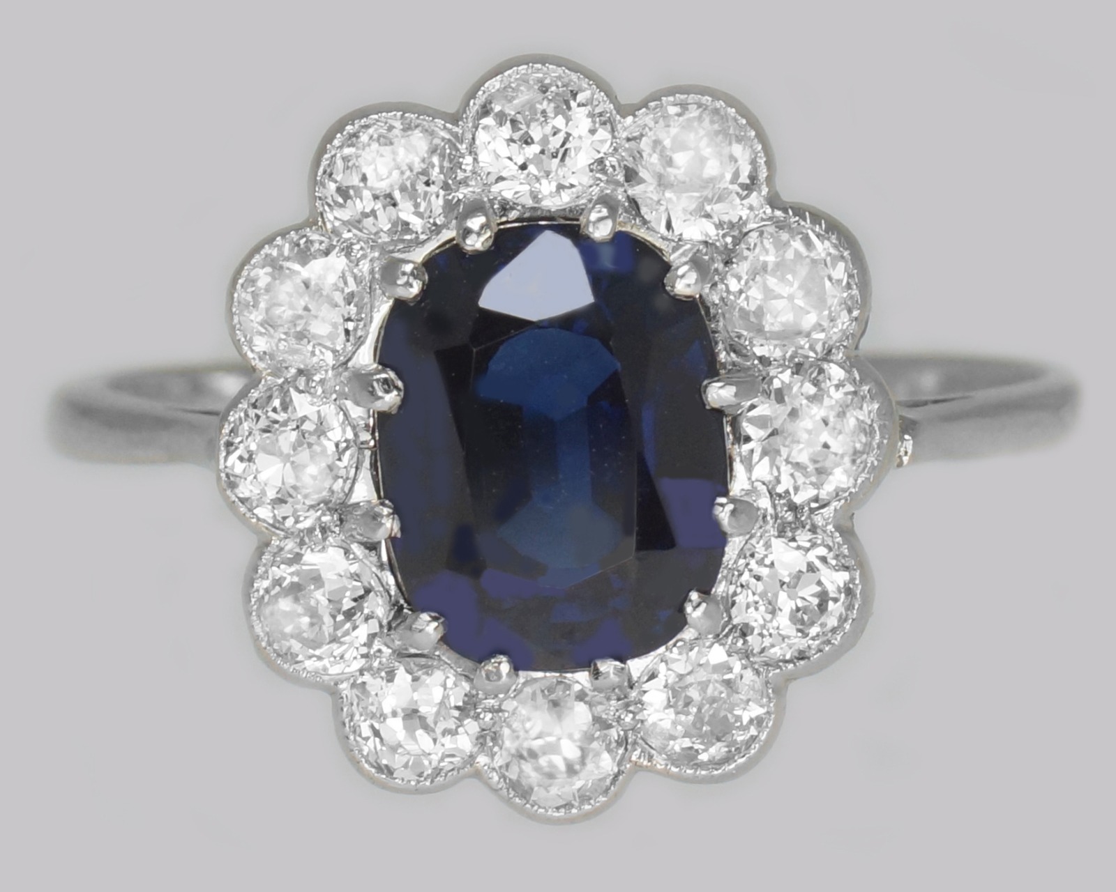 Edwardian  Sapphire & Old Cut Diamond Cluster Ring Vintage 18ct Gold & Platinum Ring (1 of 10)