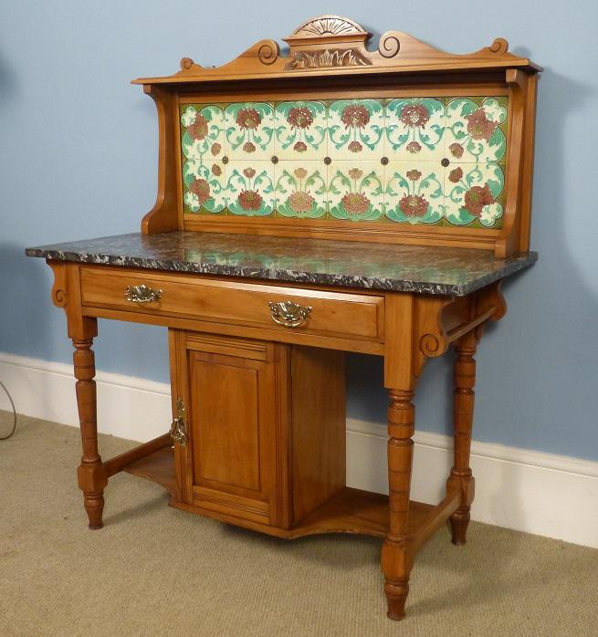 Edwardian, Satin Walnut, Marble Top Washstand