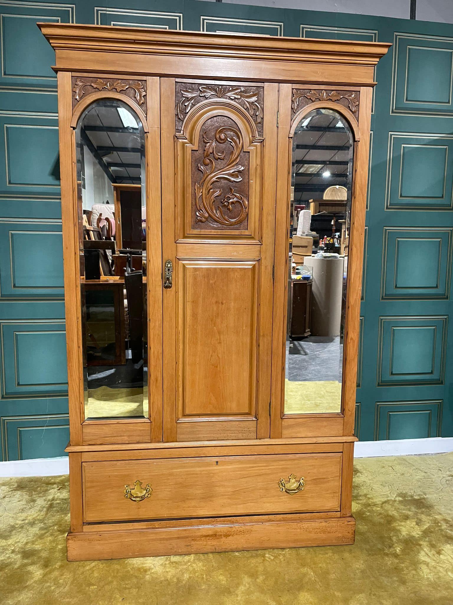 Edwardian Satinwood Mirror Door Double Wardrobe