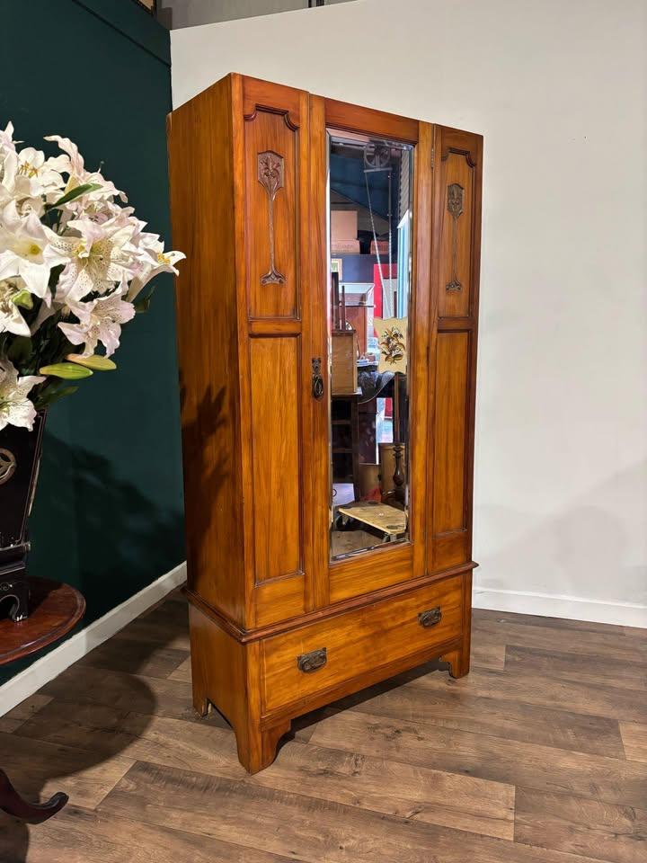 Edwardian Satinwood Mirrored Door Wardrobe (1 of 16)