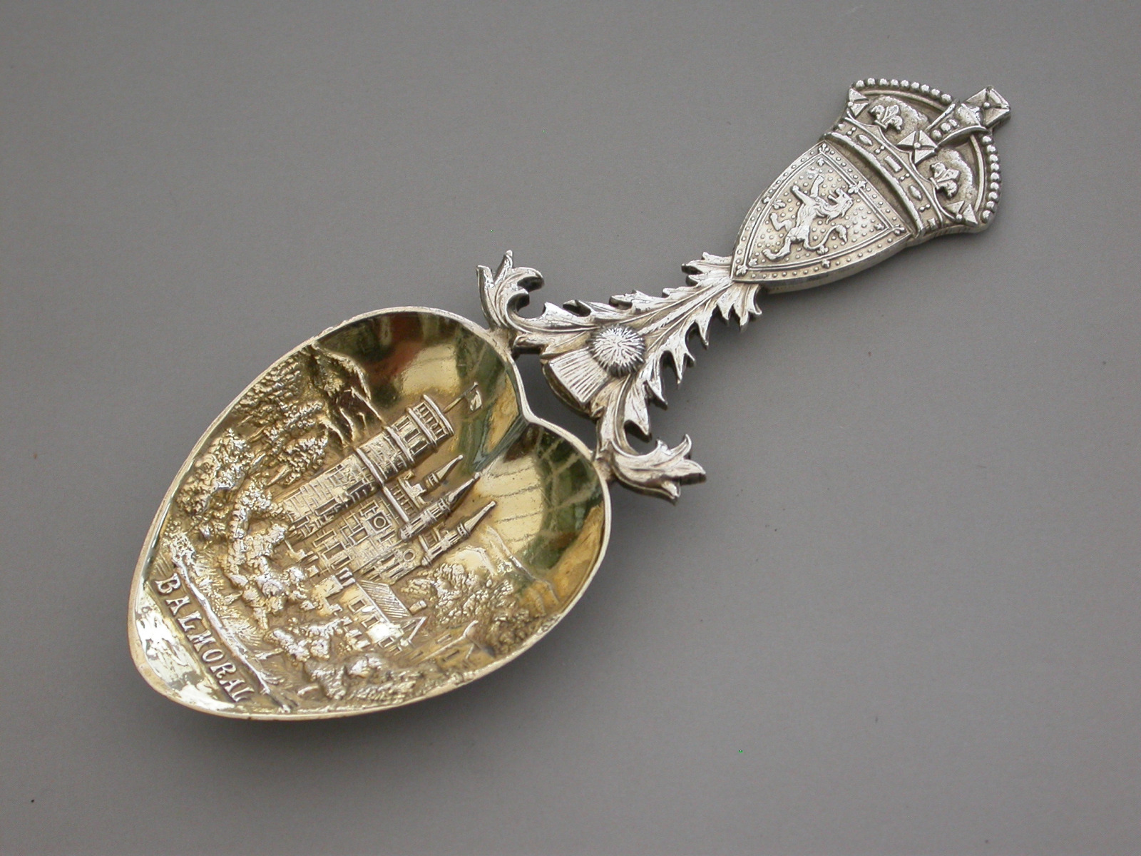 Edwardian Scottish Provincial Silver Caddy Spoon 'Balmoral Castle'. by William Robb Ballater, Edinburgh, 1905