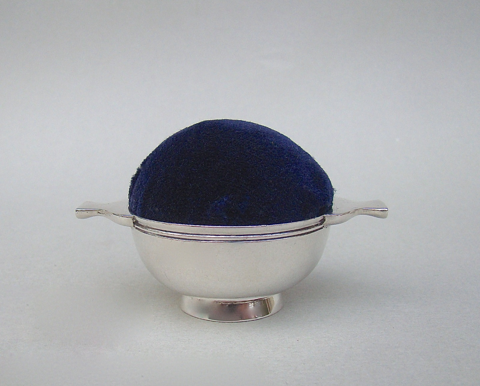 Edwardian Scottish Silver Quaich Pin Cushion by Hamilton & Inches, Edinburgh 1902