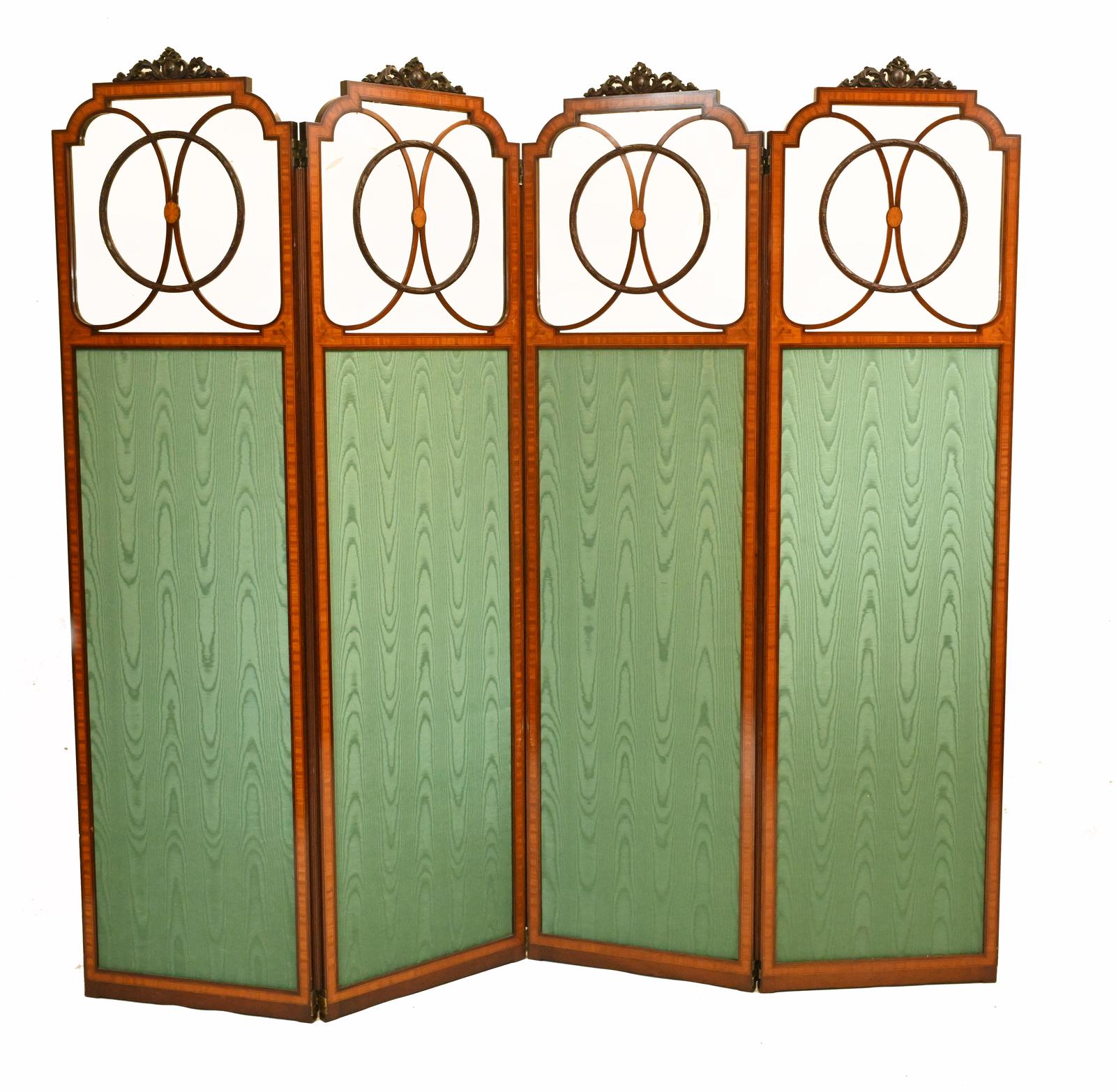 Edwardian Screen Four Panel Room Divider Satinwood c.1910