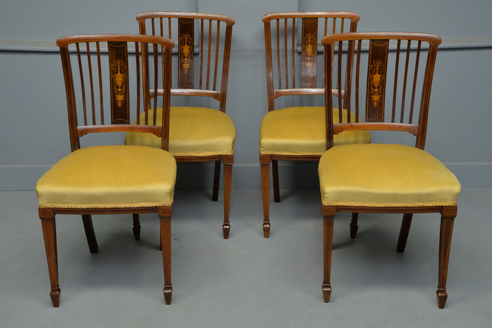 Edwardian Set of Four Inlaid Mahogany Dining Chairs