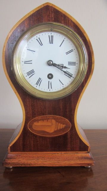 Edwardian Shell & Inlaid Balloon Shaped Clock (1 of 1)