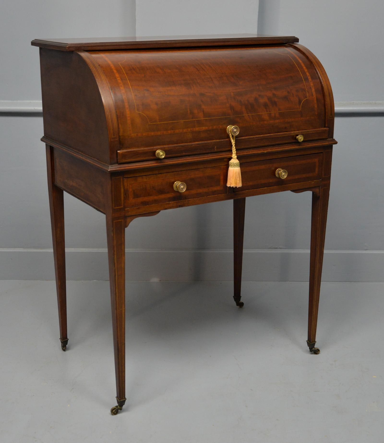 Edwardian Sheraton Revival Mahogany Cylinder Roll Top Desk