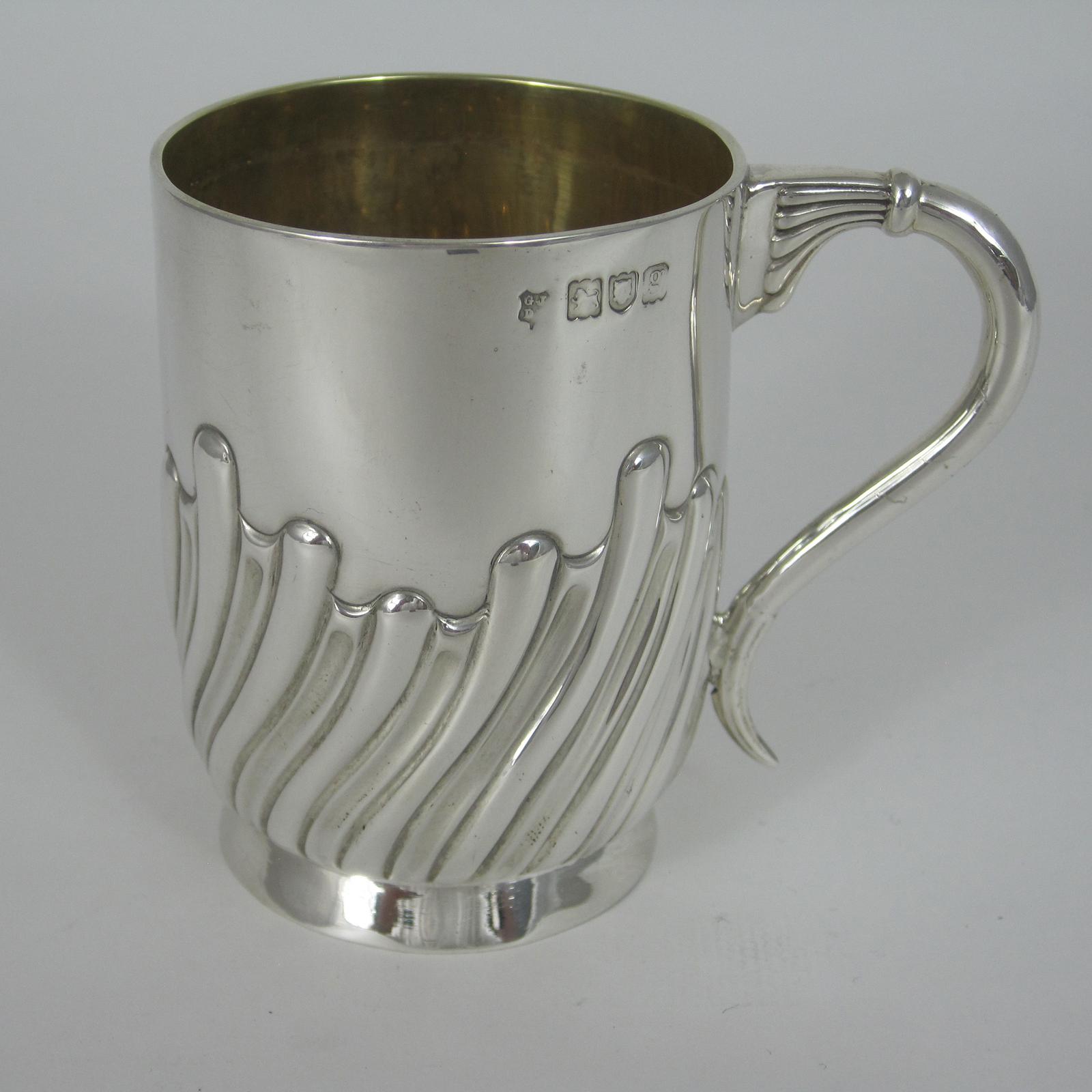 Edwardian Silver Childs Christening Mug with Spiral Fluted Chased Body