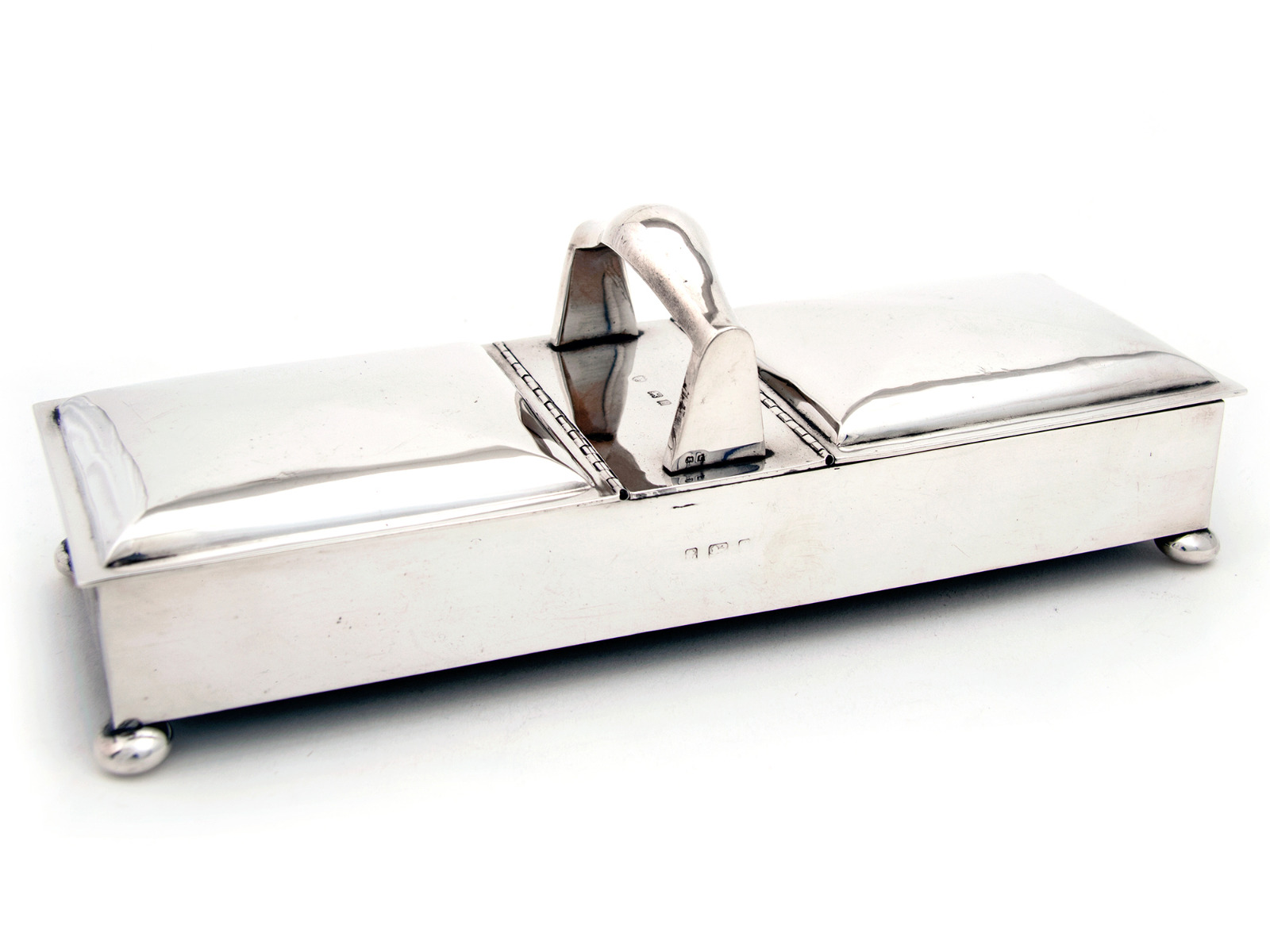 Edwardian Silver Cigar Box with Two Domed Lids and Carry Handle