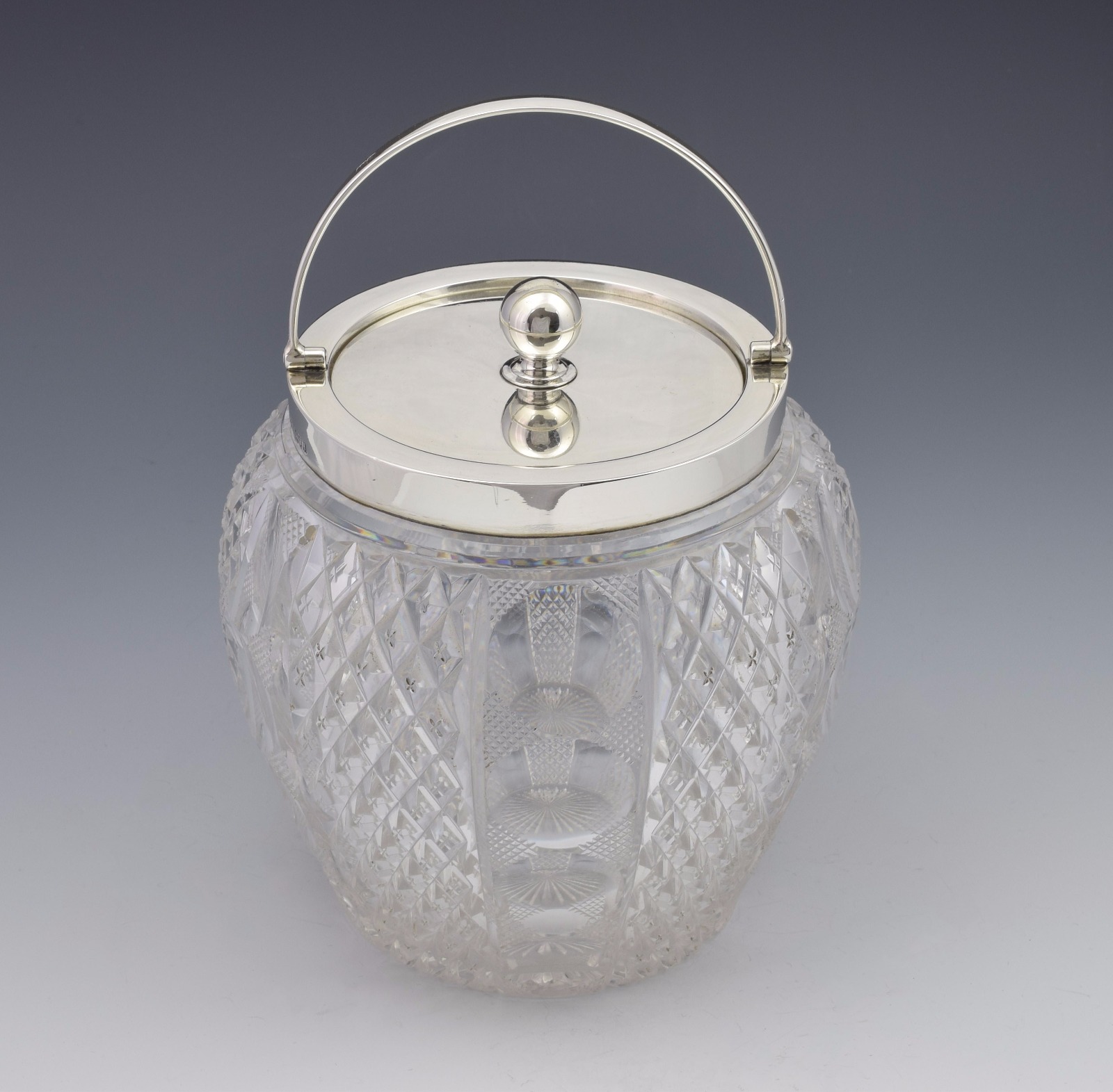Edwardian Silver & Cut Glass Biscuit Box / Barrel Grinsell & Sons