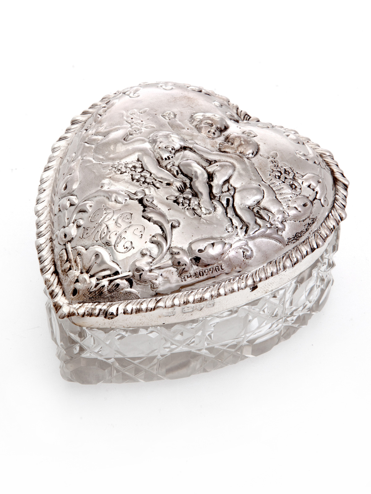 Edwardian Silver & Cut Glass Heart Shaped Trinket Box with a Pull-off Lid (1 of 1)