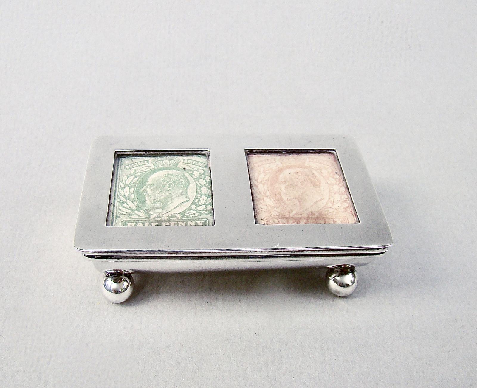 Edwardian Silver Double Trough Shaped Stamp Box - Birmingham 1907