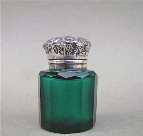 Edwardian Silver & Emerald Green Glass Scent Bottle by Saunders & Shepherd, Birmingham 1903